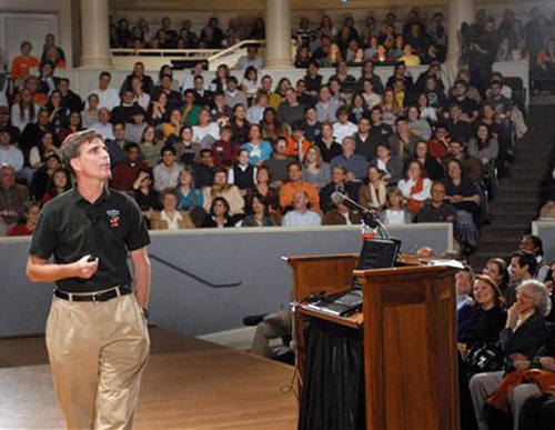 保施被評(píng)為2008年最具鼓舞人心的人。2007年8月,他得知自己患上胰腺癌,生命只剩下幾個(gè)月。去世之前,通過(guò)他的著名演講《最后一課》的視頻和書(shū),鼓舞了成千上萬(wàn)的人們。這篇演說(shuō)反響極大,全球數(shù)百萬(wàn)人觀看了網(wǎng)上視頻,美國(guó)廣播公司將他選為“2007年年度人物”之一,《時(shí)代》雜志將他列入了“世界上影響最大的100人”,同名書(shū)籍至今仍然排在“建議類(lèi)暢銷(xiāo)書(shū)”的榜首。這張照片是保施2007年11月27日,在弗吉尼亞大學(xué)禮堂中做最后一次演講時(shí)的情景。