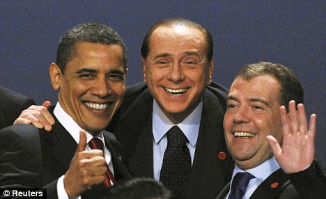 據(jù)英國媒體4月3日報道,在4月2日舉行的倫敦G20峰會上,意大利總理貝盧斯科尼再次當(dāng)眾出丑。當(dāng)出席G20峰會的各國領(lǐng)導(dǎo)人合影時,貝盧斯科尼大聲喊叫,并準(zhǔn)備將奧巴馬拉到自己的身邊。他的這一行為惹怒了伊麗莎白女王,并遭到了女王的當(dāng)眾批評。
