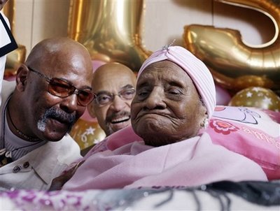 由于居住在葡萄牙的女人瑞在去年過世,貝恩斯由今年1月成為全球最老的人瑞,經(jīng)過吉尼斯世界紀(jì)錄委員會的認證。她在美國大選中投下奧巴馬一票,成為最年長黑人選民,見證歷史,全國知名。但她現(xiàn)在住在醫(yī)院里,平常還喝一點酒。