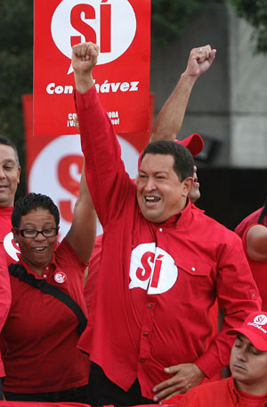 30日的集會上,查韋斯也不是沒有設(shè)想憲改公投未獲通過的情況。他說,那樣的話,2013年2月2日,他就要告別總統(tǒng)府,去過一個普通人的生活,他將會平靜地接受這個結(jié)果。這時臺下狂熱的支持者們嘆息聲一片,整齊的喊出“嗚!!查韋斯不要走!”的口號。(張笑然、尹南)
