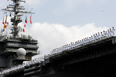 中國國防大學軍事專家孟祥青教授在接受《國際先驅(qū)導報》采訪時分析,美軍在西太平洋地區(qū)擁有足夠的軍事力量!靶→棥碧栂瘸,“華盛頓”號后進,這說明美軍認為西太平洋地區(qū)局勢趨于穩(wěn)定。否則,美軍可以采取“華盛頓”號先進駐的方式來換防。