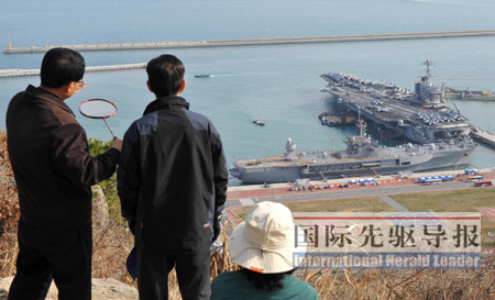 其中滿載排水量達10.2萬噸的“斯坦尼斯”號航母從加利福尼亞州圣迭戈海軍基地出發(fā),2月18日攜5000名艦員及其他4艘護艦艇抵達香港休整。2月27日上午,“斯坦尼斯”號航母編隊停靠日本佐世保軍港。演習期間,為防止朝鮮試射“大浦洞”2型遠程彈道導彈,美軍出動的“宙斯盾”級導彈驅(qū)逐艦達到7艘,其規(guī)模為歷次演習所罕見。