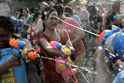 在幾天前紛紛暫停營(yíng)業(yè)的曼谷暹羅廣場(chǎng)商業(yè)區(qū),唐人街的金店重新開(kāi)門迎客。游客們又有了花錢的去處。15日晚上,在熱鬧的是隆路和考訕路,外國(guó)游客和泰國(guó)人無(wú)憂無(wú)慮地互相潑水、打水槍。