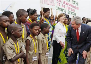 布什計劃6天訪問貝寧、坦桑尼亞、盧旺達、加納和利比里亞5個非洲國家。他此行旨在提高他的政績,以及凸顯美國解決非洲區(qū)域糾紛的努力、提倡民主改革以及協(xié)助消滅艾滋病與瘧疾。
