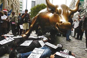 9月25日,部分抗議者在美國紐約華爾街集會,反對美國政府救市。