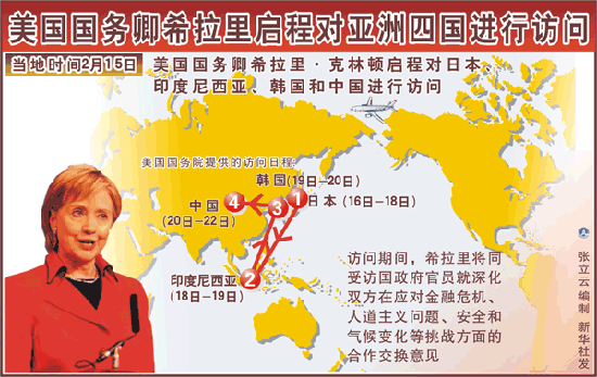 據(jù)美國(guó)《洛杉磯時(shí)報(bào)》網(wǎng)站14日?qǐng)?bào)道,昨天,就在國(guó)務(wù)卿希拉里·克林頓為其上任后的首次海外之行做準(zhǔn)備時(shí),她承諾將奉行“既不沖動(dòng)也不太注重意識(shí)形態(tài)的”外交政策。她此次在訪問亞洲時(shí)將面臨一系列敏感問題。