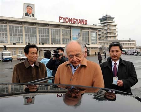 美國紐約愛樂樂團的250多名成員于當?shù)貢r間2月25日下午3點抵達平壤,開始對朝鮮進行正式訪問并將舉辦演出。這是朝鮮民主主義人民共和國1948年成立以后第一支來訪的美國交響樂團。朝鮮文化省副相宋錫煥、平壤市人民委員會副委員長金正植等有關(guān)官員及文藝工作者當天在平壤順安國際機場熱烈歡迎紐約愛樂樂團的到來。