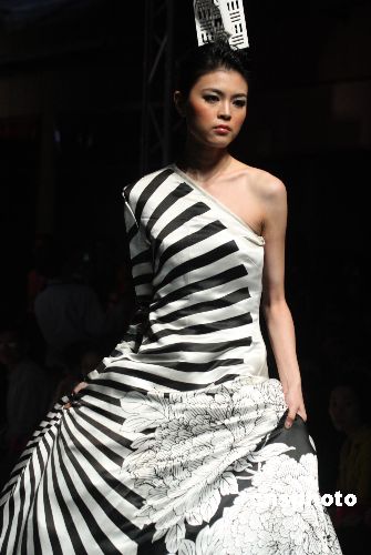 10月26日晚,在湖北武漢舉行的“2007佳海杯中國(guó)國(guó)際服裝(院校)設(shè)計(jì)大獎(jiǎng)賽”推出流行趨勢(shì)發(fā)布會(huì)專場(chǎng),來(lái)自中國(guó)香港的設(shè)計(jì)師李國(guó)華、中國(guó)內(nèi)地頂級(jí)設(shè)計(jì)師吳海燕、杭州的張義超、設(shè)計(jì)師顧林等五位設(shè)計(jì)師演繹不同風(fēng)格的“東方神韻”最新力作。作品既保持民族性,又不失時(shí)尚性,呈現(xiàn)出多變靈動(dòng)的服飾風(fēng)格,通過(guò)新絲路模特的演繹,預(yù)告了20007-2008年的時(shí)尚走向。圖為模特展示中國(guó)服裝設(shè)計(jì)師最新流行作品。中新社發(fā) 錢興強(qiáng) 攝
