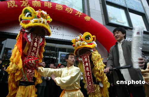 10月30日,成龍首家“成龍咖啡店”在北京新中關購物中心開業(yè)。他認為,咖啡同音樂和電影一樣,是最好的交流媒介,為此他才感覺到開創(chuàng)一個屬于中國人自己的咖啡品牌是必要的。中新社發(fā) 楊可佳 攝