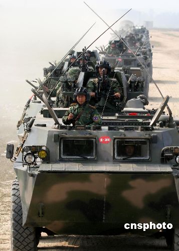 10月底,“鐵拳-2007”復(fù)雜電磁環(huán)境下機步師實兵檢驗性演習順利到達集結(jié)地域,開始進入作戰(zhàn)籌劃階段。中新社發(fā) 曾憲平 攝