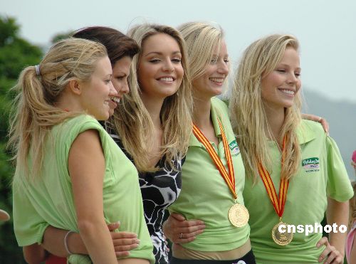 十一月十四日,第五十七屆世界小姐總決賽在三亞亞龍灣進(jìn)行“運(yùn)動(dòng)小姐”評(píng)比,一百多位佳麗分為紅、綠、粉、黃四組進(jìn)行比賽。最終綠隊(duì)獲得勝利,美國小姐在比賽中奪得第一名。中新社發(fā) 尹海明 攝