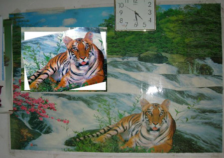 前晚9時,網(wǎng)友“攀枝花xydz”在“打虎派”大本營色影無忌華南虎臨時論壇發(fā)帖說,“周老虎”的原形是一副老虎年畫,除耳朵不一樣外,哪里都一樣,甚至連老虎紋路都是一樣。各路高手將年畫老虎與“周老虎”進行比對,得出是同一只老虎的結論。