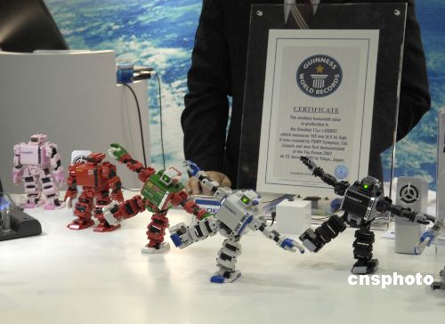 “2007國際機器人展”11月28日在日本東京國際展覽中心開幕。在為期4天的展覽中,來自世界各國和地區(qū)的199家公司、66個團體和機構(gòu)將在多達1071個展區(qū)中展示最尖端的機器人技術(shù)和相關產(chǎn)品。中新社發(fā) 侯宇 攝