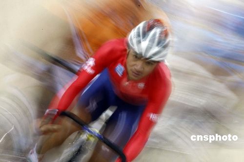 香港選手黃金寶參加國際自盟場地自行車世界杯男子記分賽。中新社發(fā) 盛佳鵬 攝