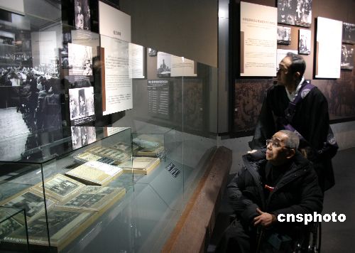 十二月十三日,經(jīng)過兩年擴(kuò)建的侵華日軍南京大屠殺遇難同胞紀(jì)念館正式開放。擴(kuò)建后的紀(jì)念館占地一百一十一畝,是原來的三倍多,總建筑面積擴(kuò)大十倍,達(dá)到二萬五千平方米,其中新展區(qū)九千平方米。目前共展出三千件文物、三千五百多張照片,并設(shè)置了檔案墻,擺放著一萬多份遇難者、幸存者以及見證歷史的外籍人士的個性化資料盒等。中新社發(fā) 苗杰 攝
