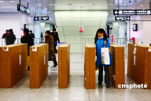 12月17日,在北京地鐵5號線天通苑站出入口處,市民正穿梭于新安裝完畢的一批電子設(shè)備中。據(jù)工作人員介紹,地鐵車站安裝的新設(shè)備是自動檢售票系統(tǒng),出入口處的是閘機(jī),其相應(yīng)的配套設(shè)備還有自動售票和充值機(jī)。目前5號線全線已經(jīng)陸續(xù)安裝了新的自動檢售票系統(tǒng),但不會立即投入使用,還需要時間調(diào)試。屆時,北京地鐵1、2、13號線也將對原有的檢售票系統(tǒng)進(jìn)行改造,初步預(yù)計(jì)明年3月以后,所有北京地鐵線路都要開通和使用自動檢售票系統(tǒng)。中新社發(fā) 鄭雄增 攝