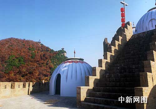 傍晚時(shí)分,一串串號(hào)燈彤紅高懸,帥旗、戰(zhàn)旗、旌旗獵獵。偶爾傳來(lái)幾聲戰(zhàn)馬嘶鳴和幾聲清脆的巡營(yíng)梆鼓。龍頭寺吊橋門,一夫當(dāng)關(guān),萬(wàn)夫莫開,李世民的千軍萬(wàn)馬當(dāng)年均由此入營(yíng),森嚴(yán)壁壘,固若金湯。唐營(yíng)觀夕照:當(dāng)日落西山時(shí),一輪紅日紅艷欲滴,舉手可攬。在此拍照留影,如雙手捧日。落日的余暉里,火燒云天邊斜掛,蒼山如海,殘陽(yáng)如血,真是神靈造化,天下奇觀。