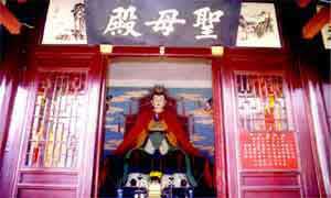 媽祖殿:媽祖是一位海神,保佑船家以及海上的平安.媽祖在我國南方沿海及東南亞、日本、朝鮮一帶極受崇拜。那么為什么要在綿山修媽祖殿呢?明清時期著名皇商介休范家,由于常有海上貿易,是舉世聞名的船幫。有一次,他們又有出海業(yè)務,船隊在大海中飄泊已有半月。此時忽然狂風驟起,烏云翻滾,四周一片漆黑,并發(fā)生了海嘯,眼看就要人仰船翻。船上的人驚慌失措,心中默念海神,希望得到救助。就在此危難時刻,突然從海中緩緩升起一位站在白蓮臺上的朱衣女子。她往海中扔了顆定風珠,風漸漸小了,天也亮了,一切又平靜下來,好象什么也沒發(fā)生過。當人們回過神來,再看這位朱衣女子時,已經(jīng)騰空而去。人們頓時明白這是海神媽祖娘娘顯靈救了他們。此次出海他們滿載而歸;氐浇樾莺,為了感謝媽祖娘娘的救命之恩,在綿山建廟供奉媽祖。媽祖為閩南方言,又稱“天上圣母”,“天后娘娘”。她能預言禍福,善于治病救人。農(nóng)歷三月初三和九月九日是媽祖的生日和升天日。媽祖左側為吳天醫(yī),醫(yī)術高超,救人無數(shù);右側為順天圣母,能除蛇妖,催生助產(chǎn),是保護婦女、兒童之神。