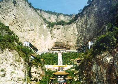 現(xiàn)在的洞玄洞是在原址上擴建的,為靈寶君的道場。主要供奉靈寶天尊和十方天尊,以及三茅真君,北天師、陳摶老祖、三豐祖師。靈寶天尊像高5米,塑于石窟內(nèi),古樸典雅,風(fēng)格獨特。朱元璋第十二世孫、明世宗朱厚熜篤信道教,于嘉靖二十一年(1542)上綿山祭祖時敕建醮齋法壇。此處還有神龕、盤龍?zhí)、迎仙松等景觀。古跡遍地,蔚為大觀。
