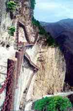 通天云衢:鐵索嶺上古建筑星羅棋布,山嶺巍峨,曠谷老松。綿綿黛色賞心悅目,但是從古至今鐵索嶺上下只有通過鐵索,很多老弱者不能成行,游人只能抱憾而去。為彌補此不足,三佳綿山投資開發(fā)者閻吉英先生于此山壁上建“之”字形天梯一座。天梯依山懸空縱橫盤亙而成,共計440多個臺階,全長300余米,如龍駕祥云,氣勢雄偉,堪稱精品。春日登此棧道,觀谷中山花競放,鶯轉(zhuǎn)鸝鳴,微風拂過發(fā)鬢,寵辱皆忘,心曠神怡。夏日登此棧道,看對山松柏蒼翠,山巒如黛,常有彩虹從溝間騰起,雖有游人不同心情千種萬種,看此景,只會感到聳峰茂林充盈神心。秋日的綿綿薄霧如白絮飄飛,云隨風飄,風隨云轉(zhuǎn),姹紫嫣紅的山嶺,時顯時沒。冬日雪落棧道云衢,蒼蒼茫茫,山接天,天連山,“大雪壓青松,青松挺且直,”只覺若谷虛懷之外的自己頂天立地。雪霽,金光灑滿山嶺,湛藍的天,一覽無余,畫中的您,只能用詩來喻。無論何時行于此棧道上,塵勞頓無,飄然欲仙。