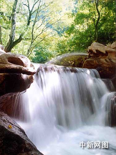 又往前走一點(diǎn),是一道天然的小瀑布,那朵朵撞擊在石塊上飛濺出的銀白的水花,如霧如煙,雖沒(méi)有“飛流直下三千尺”的磅礴氣勢(shì),卻給人一種柔和、幽雅的感覺(jué)。瀑布在歡唱,表露著它那按不住的歡樂(lè)。