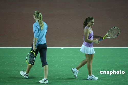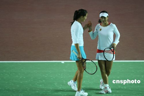 一月二日,伊萬諾維奇/彭帥在香港網(wǎng)球精英賽雙打比賽中以二比八負于德門蒂耶娃/拉切德組合。當(dāng)晚﹐香港網(wǎng)球精英賽在維多利亞公園網(wǎng)球場揭幕。中新社發(fā) 武仲林 攝