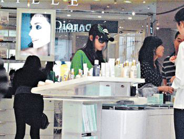 發(fā)完媚功,有氣無(wú)力的黃圣依到廣場(chǎng)地下的化妝柜位買護(hù)膚品,能夠得CEO女友垂青的品牌當(dāng)然不是泛泛之輩,產(chǎn)自法國(guó)一向以香薰美容作主打的DARPHIN屬貴價(jià)品牌,普通一支精華素便要2000元以上,但能夠抗皺緊膚,增強(qiáng)自己的戰(zhàn)斗力?赡軇偛虐l(fā)功太用力,所以Eva回答化妝小姐的問(wèn)題顯得無(wú)神無(wú)氣,而購(gòu)物期間,楊子一直在女友身后發(fā)手機(jī)短訊解悶。