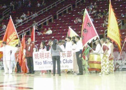 6)中國功夫走進(jìn)火箭隊(duì)賽場,太極少林和秧歌為姚明助威----12月31日晚,NBA火箭隊(duì)舉行2007年最后一場比賽開始前,由休斯頓姚明球迷俱樂部等單位組織的中國功夫表演隊(duì)伍大張旗鼓地出現(xiàn)在豐田中心的賽場上,具有濃郁中華民族文化特色的太極、少林和秧歌到這里為火箭姚明助威來了。由黃曉明,程進(jìn)才,釋行浩和喬鳳祥等率領(lǐng)的太極,少林和秧歌隊(duì)伍在豐田中心向美國主流社會(huì)大展中華文化之精粹。