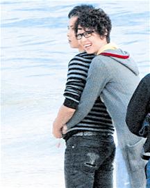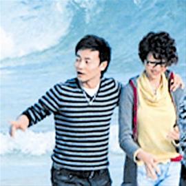 組圖:蔡少芬?guī)Ч庞蜗愀?海灘嬉戲拍搞怪照