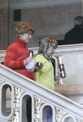 昨天8時(shí)不到,《梅蘭芳》劇組的20輛工作車就抵達(dá)了上海音樂廳。早報(bào)記者抵達(dá)時(shí)發(fā)現(xiàn),在普安路上幾處公交終點(diǎn)站集中地,《梅蘭芳》劇組有一條特辟的停車道。11輛劇組用車整齊地停了一長排。在音樂廳金陵路正門口,負(fù)責(zé)登記外籍群眾人員的工作人員早早在門口等候。原定昨日聽?wèi)虻拇髨雒嫘枰锨饧罕娧輪T,但直到近10時(shí),也只有近百名老外,所以昨日參與拍攝的群眾演員中有不少戴上金色假發(fā)的中國人。