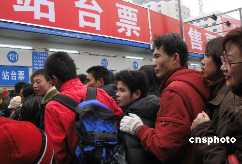 2008年1月19日周六,離春節(jié)還有十余天,大批在京就讀的大學(xué)生、打工者,在春運(yùn)高峰到來(lái)前先期買列車票、站臺(tái)票回家鄉(xiāng)過(guò)春節(jié)。中新社發(fā) 鄒憲 攝