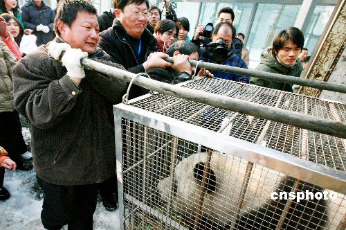 2月3日,大熊貓“蘇蘇”在蘇州動物園新居與游客見面。當天下午4時許,國寶大熊貓“蘇蘇”從徐州乘火車抵達蘇州,并在蘇州動物園內(nèi)開始為期一年的展出,吸引了許多游客先睹為快,為姑蘇市民新春佳節(jié)增添喜氣。中新社發(fā) 蘇秀 攝