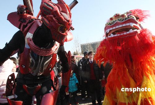 2月9日,在北京舉行的“2008北京朝陽國際風情節(jié)”上,來自英國、斯洛文尼亞、西班牙、美國、瑞典、俄羅斯、烏拉圭等10個國家的多支表演藝術(shù)團隊、180多位中外藝術(shù)家在多個舞臺進行不同場次的精彩表演。中新社發(fā) 錢興強 攝