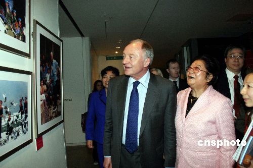 當(dāng)?shù)貢r(shí)間11日晚,中國全國人大常委會(huì)副委員長(zhǎng)、全國婦聯(lián)主席顧秀蓮在倫敦市長(zhǎng)利文斯通的陪同下,參觀在倫敦市政廳舉辦的“中國婦女”攝影展。