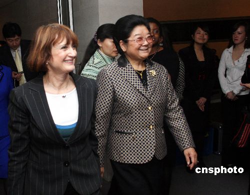 當(dāng)?shù)貢r(shí)間11日下午,中國全國人大常委會(huì)副委員長(zhǎng)、全國婦聯(lián)主席顧秀蓮(右)在大英博物館會(huì)見英國奧運(yùn)事務(wù)部部長(zhǎng)泰薩·喬維爾(左)。