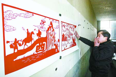 家住鄭州市高新區(qū)石佛村的作者黃軍介紹說,該連環(huán)畫從2003年開始起稿,近日基本完工。僅起稿就花費近1年半時間,他截取《西游記》原著中各章回中故事情節(jié),如猴王出海學(xué)藝、大鬧天宮等,其中以膾炙人口的經(jīng)典故事為重點。后用鉛筆在佛山紅紙上勾勒故事情節(jié)中人物、花草、山川形象。起稿基本完成。然后按照輪廓線用刻刀刻出,再把刻出的畫粘貼在長約1米、寬約0.6米的白色硬紙上。這樣一幅一幅畫先后做出,拼在一起共有210幅。黃軍說,他還打算給每幅畫配上詩句。