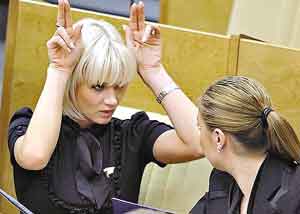 據(jù)報(bào)道,就在俄國家杜馬選舉前,普京曾向統(tǒng)一俄羅斯黨高層抱怨說,黨內(nèi)漂亮迷人的女性代表太少了,遠(yuǎn)遠(yuǎn)達(dá)不到吸引眾多投票者的程度。隨后,這一“錯誤”很快就得到了“糾正”,5名艷光四射的美女被迅速補(bǔ)充進(jìn)來,當(dāng)中包括體操奧運(yùn)冠軍霍爾金娜、冬奧會冠軍朱洛娃、藝術(shù)體操奧運(yùn)冠軍卡巴耶娃在內(nèi)的3名前奧運(yùn)會冠軍,此外還有曾擔(dān)任過保鏢的女拳擊運(yùn)動員娜塔麗婭和莫斯科大劇院首席芭蕾舞演員查卡諾娃。