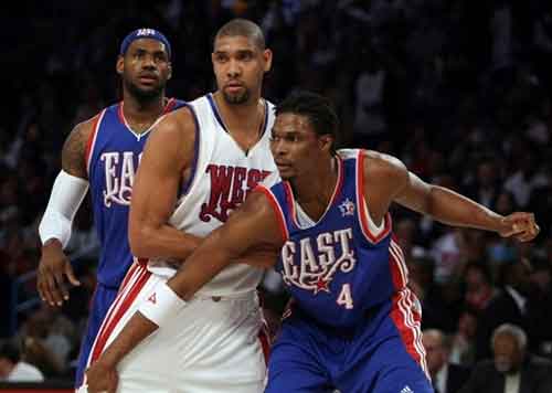 北京時(shí)間18日上午,2008年NBA全明星周末的重頭戲——東西部全明星賽在新奧爾良開(kāi)戰(zhàn)。最終,東部明星隊(duì)以134-128擊敗西部明星隊(duì)。全場(chǎng)獲得27分9次助攻8個(gè)籃板的詹姆斯榮膺全明星賽MVP。中國(guó)球員姚明得到6分5個(gè)籃板。