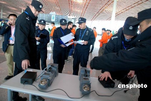 圖為機(jī)場(chǎng)工作人員在測(cè)試搜爆儀。