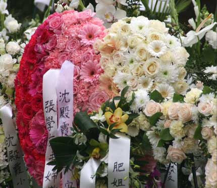 此時,墓地上只有肥肥的好友陳淑芬和其兒子守候。肥肥的墓穴上面鋪上了新草皮,上面釘了一個小牌子,四周是白色為主的花圈,顯得莊嚴圣潔。送花圈還包括徐小鳳、張學友等藝人。記者 黃運榮 金雷 攝影