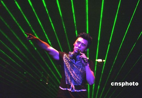 三月七日晚,破產(chǎn)后重生的香港歌星鐘鎮(zhèn)濤(阿B)在紅館舉行《Kenny B Premier Live 08》首場(chǎng)演唱會(huì)。中新社發(fā) 蔡蔓莉 攝