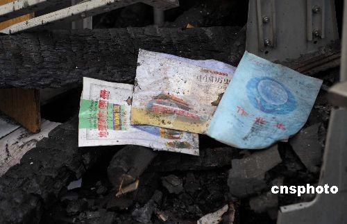3月21日,拉薩二中教室內(nèi)殘留著的學(xué)生課本。