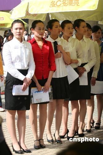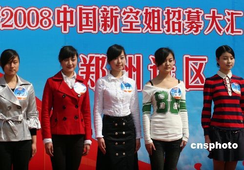 3月22日,2008中國新空姐招募大會在鄭州二七廣場舉行揭幕儀式。當日,來自全國各地的兩千多位美女云集鄭州報名應(yīng)聘。據(jù)介紹,這是有史以來最大規(guī)模的空姐招募,此次招募大會計劃在全國招募500名空姐,其中鄭州地區(qū)招募55名空姐。中新社發(fā) 陳代述 攝