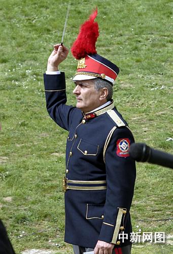 希臘當(dāng)?shù)貢r(shí)間3月24日,北京二00八年奧運(yùn)會(huì)圣火采集儀式在古奧林匹亞競(jìng)技場(chǎng)舉行。圖為儀式現(xiàn)場(chǎng)的樂隊(duì)指揮。 中新社記者 王歡