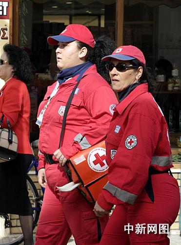 希臘當(dāng)?shù)貢r(shí)間3月24日,北京二00八年奧運(yùn)會(huì)圣火采集儀式在古奧林匹亞競(jìng)技場(chǎng)舉行。儀式開始前,身著醒目紅色工作服的救護(hù)人員準(zhǔn)備入場(chǎng)。 中新社記者 王歡