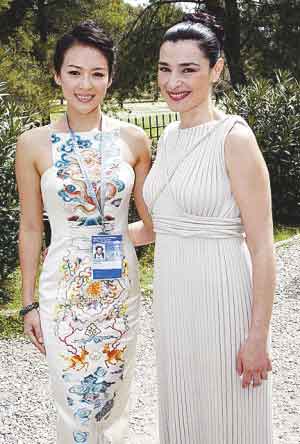 當(dāng)天,章子怡身穿富有中國特色的露背中式旗袍,于上午10點(diǎn)半進(jìn)入奧林匹亞古競技場。那件刺繡旗袍上,有龍,有白云,有鶴,有很多中國的非常吉祥的象征,由著名設(shè)計(jì)師專門設(shè)計(jì),十分艷麗搶眼,甫一亮相,就得到了在場全體中國人的掌聲和歡呼。當(dāng)天陽光很好,她的心情也不錯,但她此行的身份卻是著名網(wǎng)站搜狐的特約記者,在現(xiàn)場她也當(dāng)了把追星族。隨著前國際奧委會主席薩馬蘭奇入場后,章子怡拿起相機(jī)對準(zhǔn)薩翁,而后兩人愉快合影。章子怡落座貴賓席5排左邊第4位。在儀式過程中,她面帶微笑,不時站起身用相機(jī)記錄。
