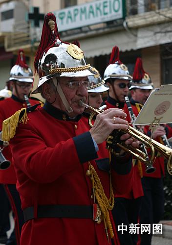 3月25日,北京2008年奧運圣火希臘傳遞第二天,慶典儀式在終點約阿尼納舉行。圖為參加演出的老樂手。中新社記者 王歡