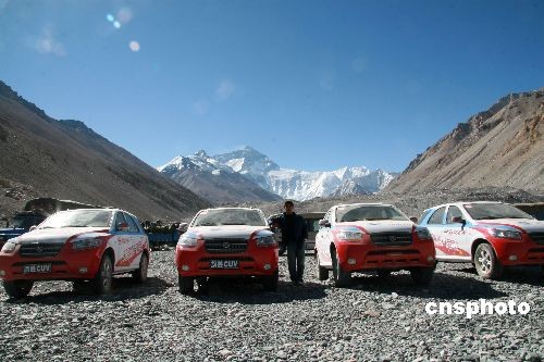 圖:中國(guó)登山隊(duì)圣火傳遞車隊(duì)抵珠峰大本營(yíng)
