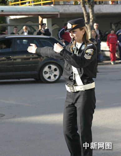 3月26日,北京奧運會圣火希臘境內(nèi)傳遞第三日,抵達最后一站韋里亞。距離慶典儀式還有一個小時,女交警在輸導(dǎo)交通。中新社記者 王歡
