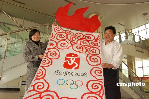 喜迎奧運(yùn)圣火 “祥云火炬”風(fēng)箏濰坊試飛(2)
